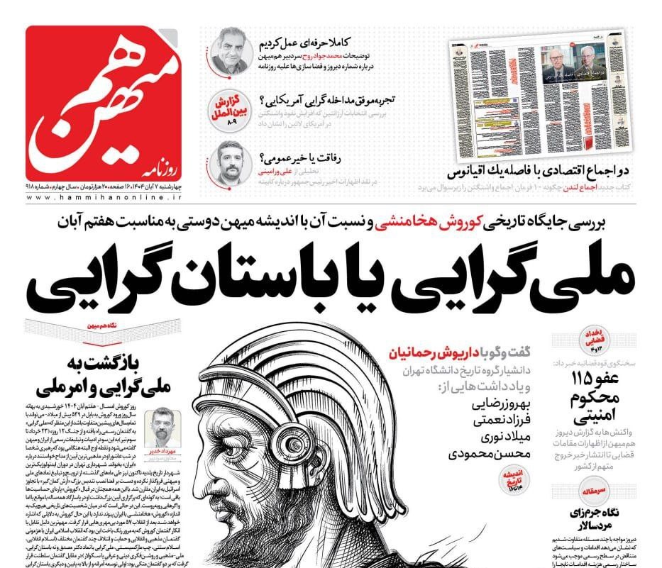 سرمقاله روز چهارشنبه ۷ آبان روزنامه هممیهن