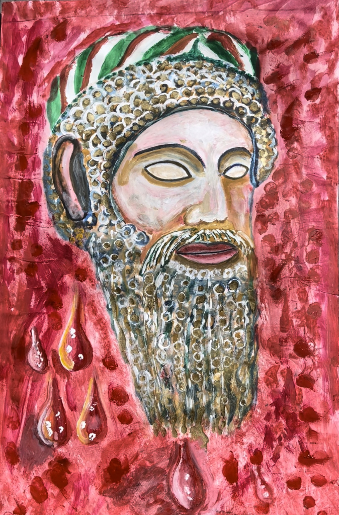 فرمان نایب خدا که بر بالای گنبدی از قیر در حال ذوب ایستاده بود شکافتن سینه خدا بود تا قلبش را از طپش بیندازند، شاید که نهضت عقیم شود. کوژپشتی ساطوری خونین از خون کهنه و نو از هزارهها تا امروز به دندان، با ِاشکَمی بر آمده از خون مردم نجیب ایران، با هیکلی زمخت، با رفتاری خشن، با پاها و دستانی گشاده از چربی و بر آمده از نان و گوشت و نفت مفت و بوی گند دود اعتیاد به سوی پیکر خونین خدا به راه افتاد. چند واژهی نامفهوم بر لب آورد و با چشمانی برآماسیده از خون، سینهی خدا را شکافت! وای وای! که این بار خوِد خدا را کشتند.