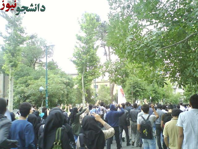 پس از آن دانشجویان که لحظه به لحظه بر تعدادشان افزوده شده بود به سمت سردر اصلی دانشگاه حرکت کرده و شعارهایی چون "یا حسین میرحسین"، "مرگ بر دیکتاتور"، "نصر من الله و فتح القریب، مرگ بر این دولت مردم فریب" سر دادند.