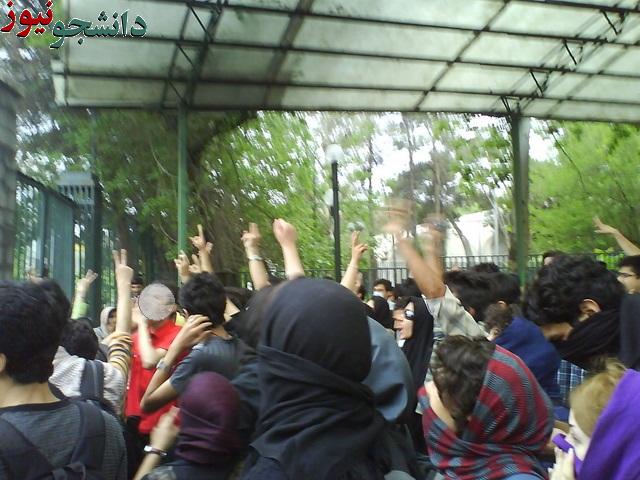 صدها تن از دانشجویان دانشگاه تهران در اعتراض به حضور محمود احمدی نژاد در این دانشگاه تجمع اعتراضی برپا کردند.