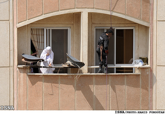 صبح روز گذشته مثل هر روز دیگری برای مردم شهر شروع شد. عده‌ای سر كارشان رفتند، عده‌ای در خانه ماندند و همه چیز كم و بیش طبق روال بود. اما ساكنان منطقه‌ای در شمال غرب تهران روزشان را درحالی شروع كردند كه پلیسی معلق از آسمان به روی بالكن پریده بود، تا دیش‌های ماهواره را برای چندمین بار زیر پوتین‌هایش له كند.