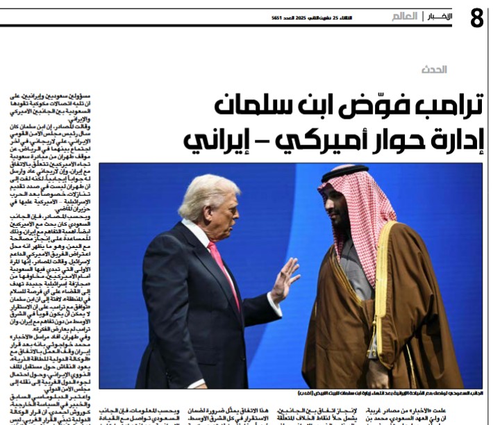 روزنامه الاخبار از منابع غربی مطلع شد محمد بن سلمان، ولیعهد عربستان سعودی، از دونالد ترامپ، رئیس جمهور آمریکا، اختیاراتی دریافت کرده که براساس آن گفتگوهایی برای میانجیگری بین ایران و امریکا مدیریت کند تا به توافقی میان دو طرف به دست یابد. این توافق شامل حل و فصل اختلافات مربوط به برنامه هستهای ایران و پرونده تحریمها علیه تهران است.