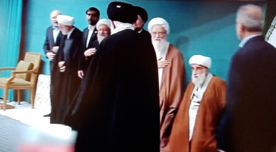 در خرداد ۱۳۸۹، در برنامهای که از تلویزیون ایران پخش شد، موضوع مربوط به موقت بودن انتخاب رئیس جمهور وقت (علی خامنهای) و تردید خبرگان در مورد اجتهاد وی حذف شد و به صورت: «آقایانی که با رهبری جناب آقای خامنهای موافق هستند قیام بفرمایند» پخش شد.