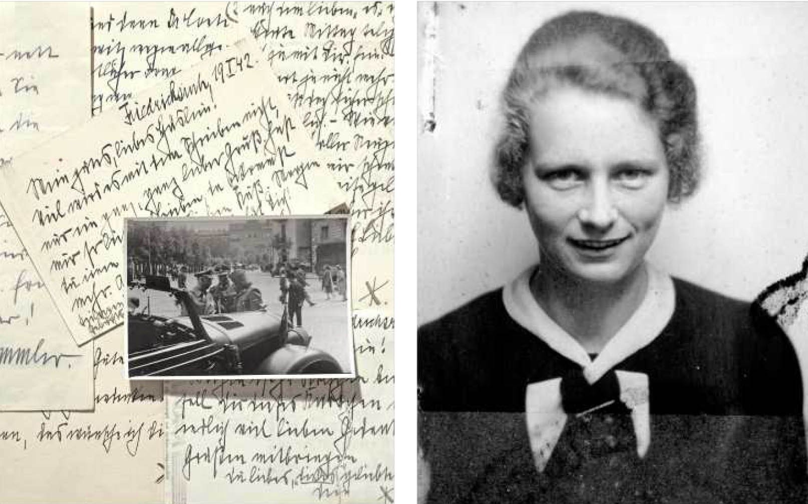 سمت چپ تصویر نامه هیملر به معشوقه اش خانم پوتهاست و سمت راست تصویری از هدویگ پوتهاست