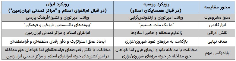 رفتار رژیم ولایی ایران نسبت به همسایگان خود نیز، هم در ساحت ایدئولوژی و هم در عمل، شباهتهای زیادی به نمونه روسی آن دارد. قدرت آتش ویرانگری این دو رژیم، در عمل، بهخاطر اهمیت ندادن به رفاه شهروندان خود، بسیار بیشتر از آن چیزی است که میتوان از ارقام مربوط به امکانات اقتصادی و انسانی آنها استنباط کرد. کافی است به حجم ویرانی و کشتار روسیه در اوکراین و کشتار و ویرانی مشابه ناشی از ماجراجویی ایران در سوریه، لبنان، غزه، عراق و یمن توجه کنیم.