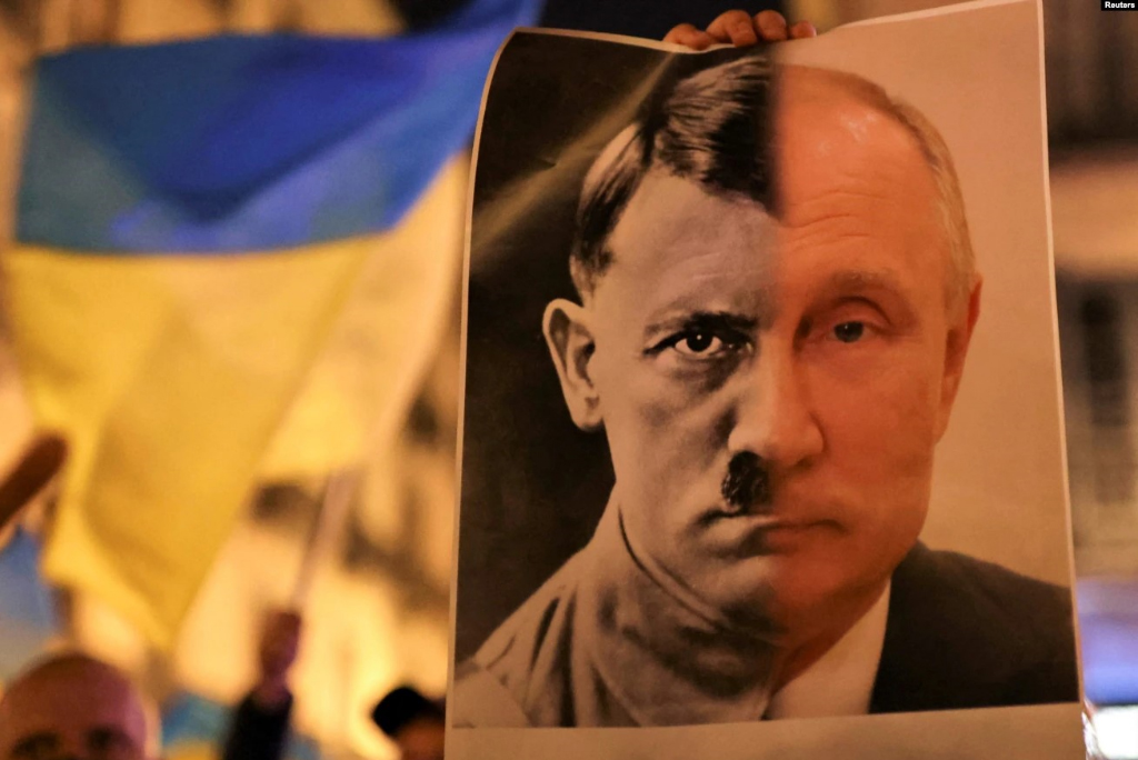 دردناکتر از همه لشکرکشی جنایتکارانه به اوکراین وبه توپ بستن صدها بیمارستان و کودکستان، همراه با آواره کردن میلیونها اوکراینی از خانه و کاشانه را همچون اقدامی در راستای «نازی زدایی» جلوه داده و معترضین به این اقدامات در جامعه روسیه را به عنوان دیوانگان معرفی کند.(مراجعه شود به ترجمه مصاحبه جامعهشناس روس «گرگ یودین» با «سایتآنلاین»)