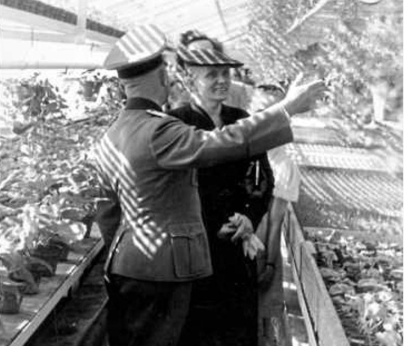 این مزرعه از سال ۱۹۳۹ توسط «مؤسسه آزمایشی آلمان برای تغذیه و تأمین مواد غذایی» (DVA) اداره میشد. این شرکت متعلق به سازمان سرکوبگر نیمهنظامی اس اس بود. این مؤسسه به سوالاتی مانند این پاسخ میداد: آیا گندم ارگانیک برای «جامعه مردمی» سالمتر است؟ چگونه میتوان فلفل را با گیاهان معطر «آلمانی» جایگزین کرد؟ DVA در اردوگاههای کار اجباری راونسبروک (Ravensbrück) و آشویتس (Auschwitz) و همچنین در مناطق اشغالی پایگاه داشت. اما باغ آزمایشگاهی مرکزی در داخائو بود. ساختمان تحقیقاتی و آسیاب ادویه هنوز پابرجا هستند.