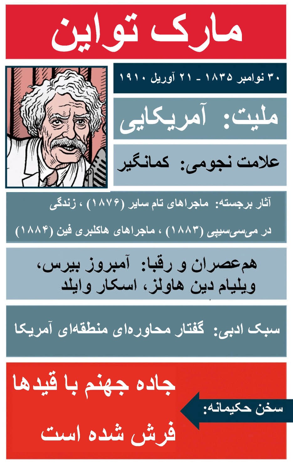 چه بسا نامش ساختگی بوده باشد، اما معدود نویسندگانی هستند که به اندازهی این فرد که قبلاً ساموئل لانگهورن کلمنز (Samuel Langhorne Clemens) نامیده میشد، سرسختانه صادق و اصیل بودهاند.