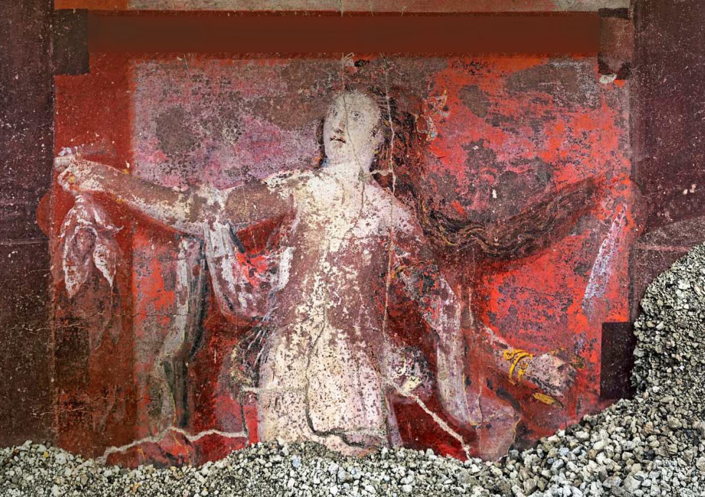 زوختریگل: اکنون در «خانهی تیاسوس» (Thiasos) هستیم، ویلایی مجلل از طبقهی اشراف. در آغاز سال، قصد داشتیم کاوش را اینجا به دلایل مالی به پایان برسانیم. اما در یکی از اتاقهای آخر، چیزی یافتیم که از جسورانهترین انتظارمان فراتر بود. وقتی دریافتیم چه کشف شگفتانگیزی کردهایم، من با پروندهای محرمانه از عکسها به رم رفتم تا شخصاً موضوع را به وزیر فرهنگ اطلاع دهم. احساس میکردم ترکیبیهستم از یک پسر مدرسهای و یک مأمور مخفی.