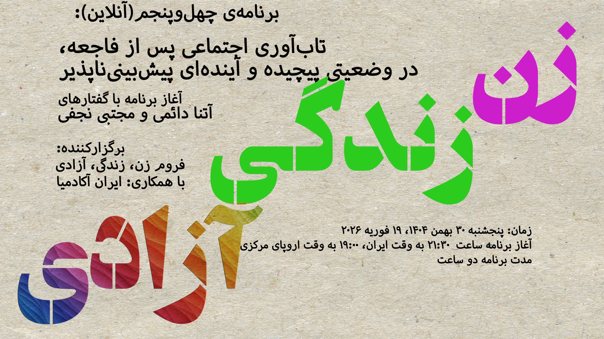 ـ فروپاشی امنیتی و اقتصادی: مردم در محاصره سرکوب جنگ اختمالی پیش رو، تورم، و کوچ اجباری بیدفاع ماندهاند.